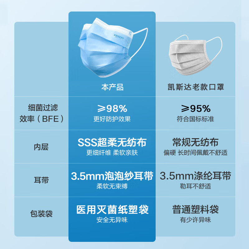 2、抗?jié)裥院妥韪粜裕盒滦歪t(yī)用口罩具備抗?jié)裥阅埽乐挂蚺宕髡吆粑a(chǎn)生的霧氣影響防護(hù)效果,其阻隔性能強(qiáng)大,有效防止飛沫、血液等直接接觸,降低交叉感染的風(fēng)險(xiǎn)。